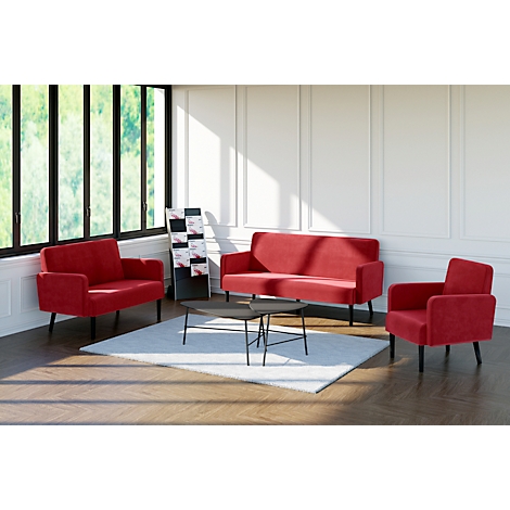 Fauteuil meet by Paperflow LISBOA, revêtement velours rouge, piètement noir, L 710 x P 815 x H 830 mm