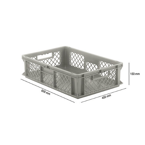 Euro Box Serie EF 6151, aus PP, Inhalt 29,4 L, durchbrochene Wände, grau, Durchfassgriff