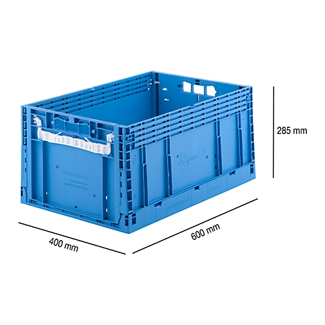 Die Kästen sind mit aktivem Sicherheitsverschluss und ergonomisch geformten Griffbügeln ausgestattet, die den Transport von Waren einfach machen. Sollte einmal nichts zu lagern sein, sind die Kisten ohne feststehende Reihenfolge besonders schnell klappbar und dadurch sehr platzsparend. Die Traglast beträgt ca. 20 kg pro Kasten und das Polypropylen ist unempfindlich gegen die meisten Öle, Säuren und Laugen. Die glatten Innenwände ermöglichen eine schnelle und einfache Reinigung!