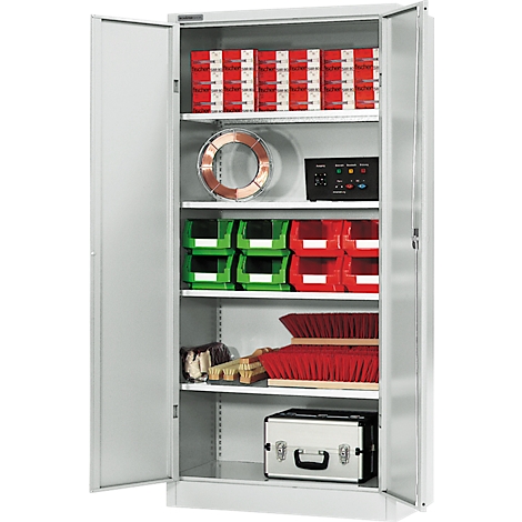 Die Lieferung des mit 10 Jahren Garantie versehenen Materialschranks MSI 2509 erfolgt bereits vollständig montiert. Zusätzlich kann er problemlos mit weiteren, separat bestellbaren Zwischenböden ausgestattet werden.