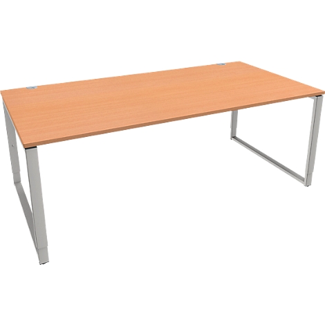 Dieser Schreibtisch ist mit einem höheneinstellbaren Bügelfußgestell ausgestattet und ermöglicht so jederzeit komfortables Sitzen während der Arbeit. Mit dem Höhenversteller können Sie den 650 mm hohen Schreibtisch auf bis zu 850 mm einstellen. Die Höhenverstellung erfolgt über eine Rohr-in-Rohr-Technik. Der klassisch rechteckige Schreibtisch ist wahlweise in den Breiten 1200 mm bis 2000 mm erhältlich. Ausreichend Platz bietet zudem die Tischplatte mit einer Tiefe von 800 mm oder 1000 mm, je nach gewählter Ausführung. Die Tischplatte in Schwebeoptik ist 25 mm stark und melaminharzbeschichtet, was die Oberfläche robust und kratzfest macht. Zudem hat die Tischplatte einen 2 mm Kantenumleimer und verfügt über Kabeldurchlässe.