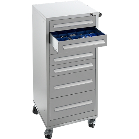 Schubladenschrank SFR 70, 7 Schübe, mit Rollen, alusilber