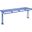 Sitzbank Essen, mit Rückenlehne, 4 Sitzplätze, mit Flansch, pulverbeschichtet, violettblau