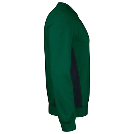 Das Sweatshirt punktet mit seinem komfortablen Schnitt, der körpernah sitzt und Ihnen gleichzeitig jede Menge Bewegungsfreiheit bietet. Das Shirt hat einen Rundhalsausschnitt, der groß genug ist, um auch einmal ein Oberhemd darunter zu tragen. Elastische Bündchen an den Abschlüssen verhindern ein Verrutschen des Sweatshirts. An den Seiten besitzt dieses Herrenoberteil Einsätze in einer Kontrastfarbe, die optisch schlank machen. Auch das beinahe unverwüstliche Material gehört zu den vielen Pluspunkten dieses Sweatshirts: Eine Polyester-Baumwoll-Kombination erweist sich als sehr hautsympathisch und pflegeleicht.