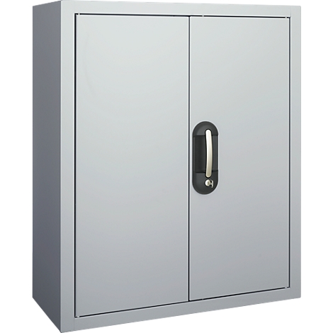 Gehäuse und Türen aus Qualitätsfeinblech, weißaluminium RAL 9006 oder lichtgrau RAL 7036 einbrennlackiert. Zwischenböden aus verzinktem Stahlblech, in der Höhe von 25 zu 25 mm verstellbar. Türen mit verchromtem Drehgriff und Sicherheitsschloss. Funktionssicherer Treibriegelverschluss.