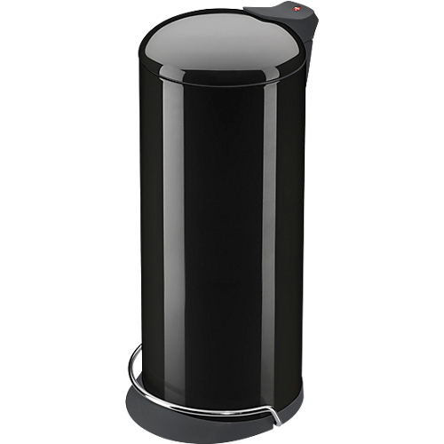 Abfallsammler in sehr eleganter Form und mit neuartigem Klemmring-System, so dass der Müllbeutel von außen nicht zu sehen ist, Aus beschichtetem Stahlblech oder Edelstahl mit innenliegender Tretmechanik. Deckel mit Geräuschsdämfungs-Clip, d.h. der Deckel schließt leise und dicht. Inneneimer feuerfest verzinkt, ca. 26 Liter.