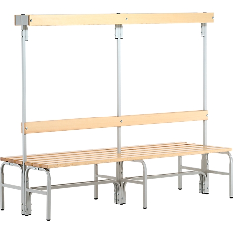 Umkleidebank, Stahlrohr/Holz, doppelt, mit Garderobenteil, L 1015/1500/2000 mm